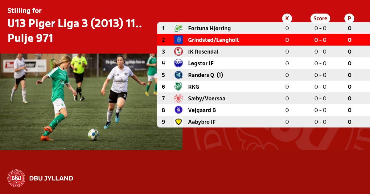 U13 Piger Liga 3 (2013) 11:11/9:9 - forår 2026, Pulje 971
