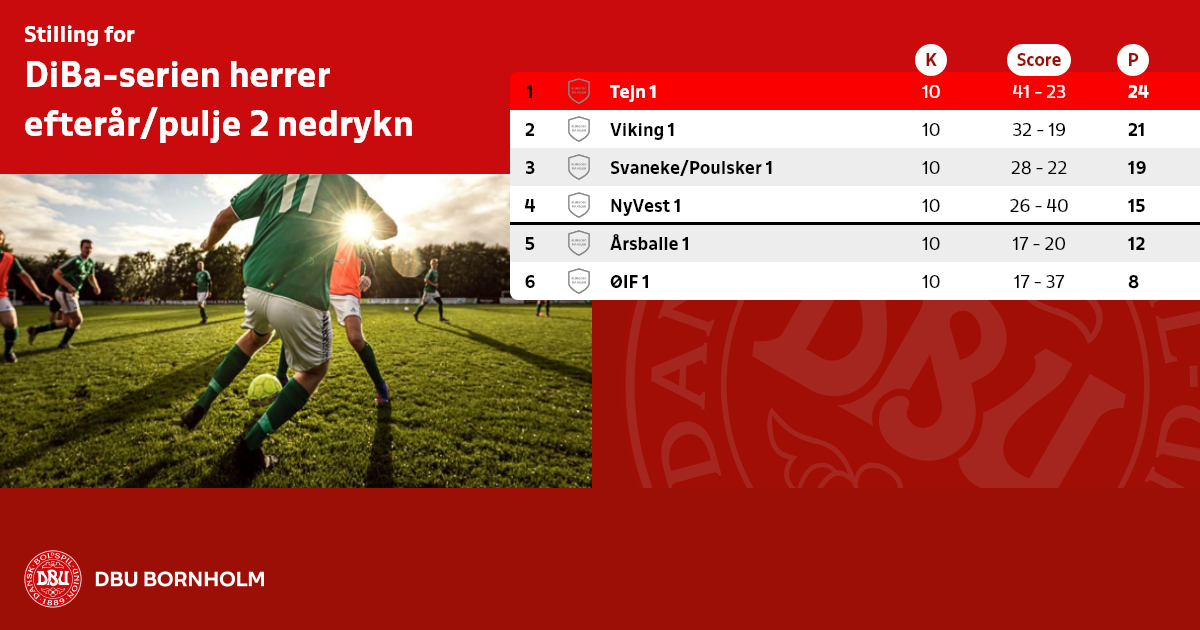 Vigtig information: Nr. 5 og 6 fra DiBa pulje 2 efter turneringens afslutning rykker ned i herreserie 1. Bemærk at fristen for flytninger i DiBa serien er 14 dage - flytteanmodninger der er indsendt for sent vil ikke blive behandlet.